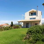 Situada a 3 km de Valta's waterfall, la Villa Eco Blu Marathopoli invita a los huéspedes a relajarse en una terraza.